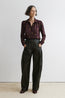 Relaxed, straight-cut shirt with a classic point collar. Features high armholes with ruching for ease of movement. Single-button cuffs with long sleeves that can be worn rolled or full-length. Cut from Italian silk deadstock jacquard, crafted on jacquard looms in Italy, bringing together heritage craftsmanship and sustainable luxury. Finished with a partial button front placket closure.