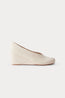 Wedge pump crafted from soft leather. Features a rounded toe and a single seam detail running down the front. Designed with a slip-on entry and molded wedge heel. An extremely versatile shoe.