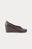 Wedge pump crafted from soft leather. Features a rounded toe and a single seam detail running down the front. Designed with a slip-on entry and molded wedge heel. An extremely versatile shoe.