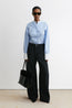 Wide-leg jeans in aged indigo Mission Denim with five-pocket styling and an oversized fit. Sits at natural waist. Our denim collection is made in Los Angeles using premium Japanese denim. Each style is crafted in limited quantities in partnership with small, family-run factories.