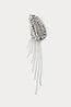Rhinestone brooch with cascading fringe and sculpted leaf-like silhouette. Wear solo or styled with its twin counterpart for a striking, symmetrical look.