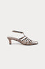 Metallic leather open-toe strappy sandals with adjustible buckle closure.