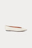 Leather ballet flats with a pointed toe and slip-on design. Features a crinkled patent leather finish with a seamless upper and a low-cut almond vamp.