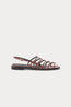 Flat, croc print leather sling-back sandals with a cross-strap design and open-toe. Features an ankle strap with a buckle closure.
