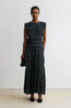 This sleeveless midi dress features a round neckline with raw edges, a fitted bodice, and a flowing skirt that creates a flattering silhouette. Crafted from crinkled material with a plaid pattern that creates a unique, bouncy drape and adds a subtle, irregular texture. Strikes the perfect balance between a relaxed and dressy style.