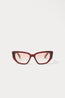 Upswept modern cat-eye frames with tinted lens by Carla Colour, exclusive to Rachel Comey.