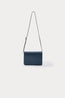 Rectangular shoulder bag with a magnetic flap closure and slim adjustable strap featuring customized Rachel Comey hardware that mimics a fishing hook. The interior is divided with a zippered compartment for organization. Can be worn crossbody, tight on your shoulder, or as a long shoulder bag.