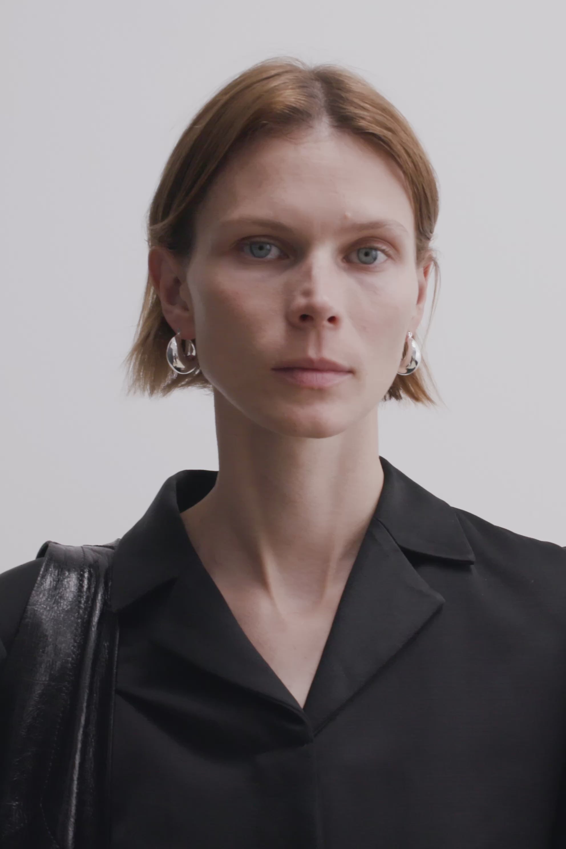 Medium chunky tapered huggie earrings with a hinge detail to open and close, in silver-plated brass.