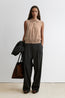 Sleeveless knit top crafted from a fine Alpaca Cotton blend. Features a pointed collar and a three-button placket at the front. Cut with a straight fit through the torso and finished with ribbed hem and arm openings.