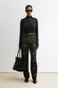 Sleek barrel leg pant cut from Moreen wool. Our Moreen wool fabric departs from a classic moire, with a jacquard woven into the pattern. Features back slit pockets, a side button, and zipper closure. Wear with our matching Yana Top for a sophisticated look for day or night.