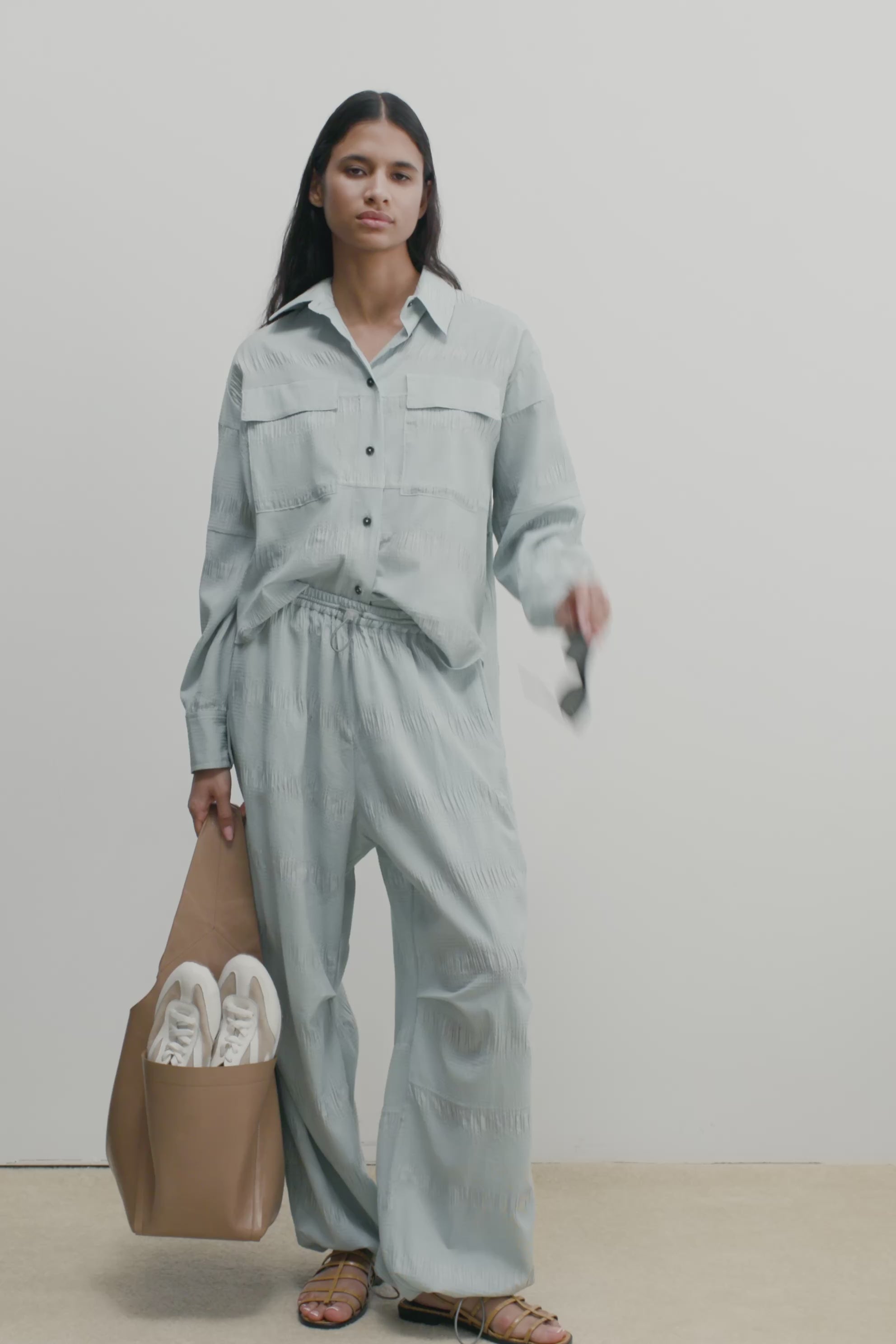 An RC classic in new seasonal colors. Paneled button-down shirt with patch pockets, cut from our new silky Pucker fabric. Pairs well with matching Fezco Pant.