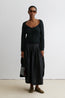 Heeled mule crafted from plush velvet with a V-cut vamp and sculpted square toe. Set on a covered block heel and finished with a subtle leather toe accent that frames the silhouette. A refined, textural style that transitions easily from day to evening.