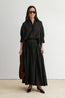 Gathered, tiered full skirt with a high-low hemline and zigzag stitching, in technical lightweight taffeta.